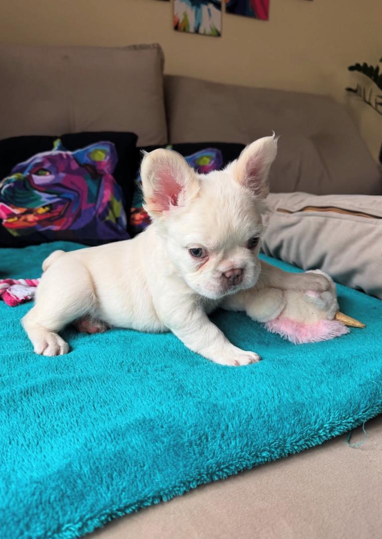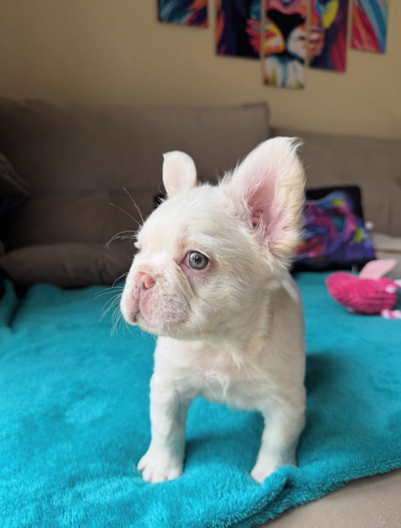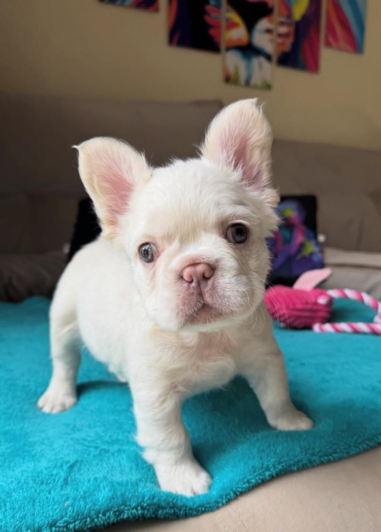 This beautiful little puppy has a soft cream coat, adorable chubby cheeks, and big curious ears that make her impossible to resist. She has a calm, sweet personality and loves being close to people—perfect for anyone looking for a loyal, loving companion.